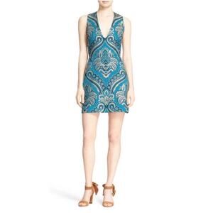 ALICE & OLIVIA 'NATALEE' JACQUARD RACERBACK A-LINE DRESS sz 6 Teal