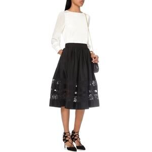 ALICE & OLIVIA NWOT Pleated Tiered Floral Lace Embroidered Black Skirt – XS/0