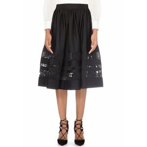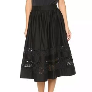 ALICE & OLIVIA NWOT Pleated Tiered Floral Lace Embroidered Black Skirt – Size 0