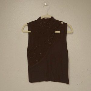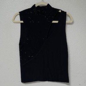 ALICE + OLIVIA NWT Black Sleeveless Cutout Glitzy Blouse (Small)