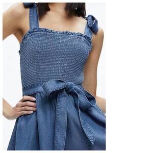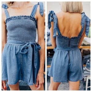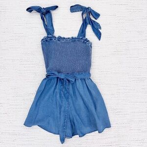 ALICE + OLIVIA NWT Roz Smocked Chambray Womens 6 Blue Romper Date Night Playful