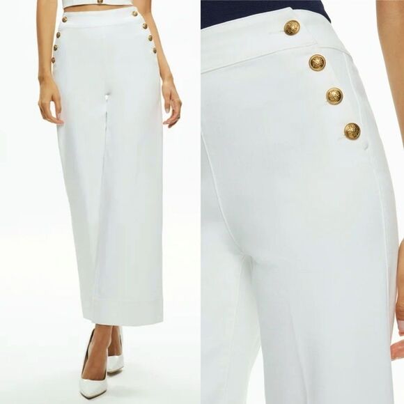 ALICE + OLIVIA NWT Size 26 Narin High Rise Wide Leg Jean Nautical Off White Pant