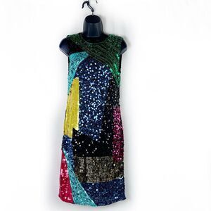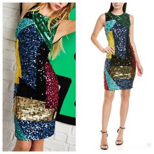 Keywords; Alice and Olivia dress, sequin party dress, NWT designer mini, holiday cocktail dress, bodycon sequin dress, rainbow sparkle dress, colorblock mini, NYE outfit, glam clubwear, birthday dress, runway glam, disco dress, retro sparkle, special occasion dress