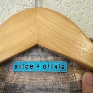ALICE + OLIVIA Plaid Button Up Shirt Womens Sz XS Roll-Tab Sleeve Hi-Low 90s W10K73