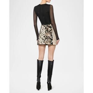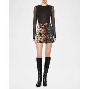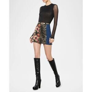 ALICE + OLIVIA Riley Denim Mixed-Media Mini Skirt