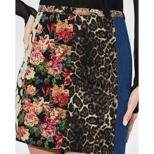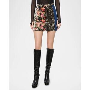 Make a bold entrance in the Riley miniskirt by Alice + Olivia, a true statement piece bursting with personality. Featuring a dazzling collage of shimmering brocades, animal prints, and vibrant textures, this patchwork skirt is cut in a flattering waist-defining A-line silhouette. The playful yet polished design is lined for comfort and finished with an exposed back zipper.