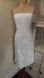 Classic strapless pencil dress with front slit and asymmetrical hemline.