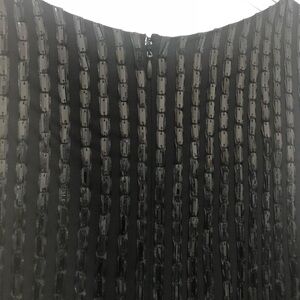 Crewneck, Sleeveless, Back Metal Zip Closure, A-line Silhouette, Bubble Hem Detail. Fully Lined