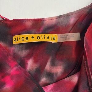 ALICE + OLIVIA Silk Mini Sheath-Style Dress with Pink and Red Watercolor Pattern