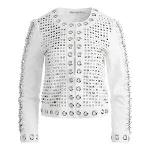 ALICE + OLIVIA Women's Kidman Embellished Leather Jacket Size S In White/Silver