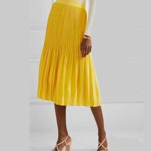 Alice + Olivia Yellow Pleated Ken Midi Skirt