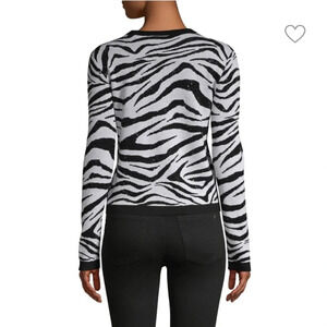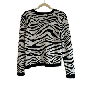 Pre owned excellent condition worn once or twice. Gorgeous wool blend zebra print sweater with black jewel studs throughout. WOMENS size large.