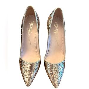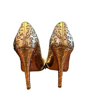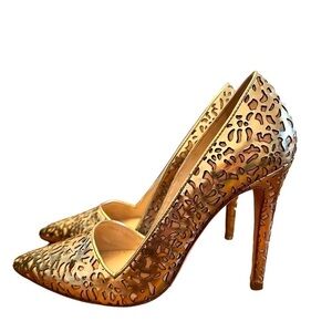 ALICE + OLIVIA by STACEY BENDET Gold Laser Cut Heel Pumps Size 9 1/2