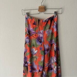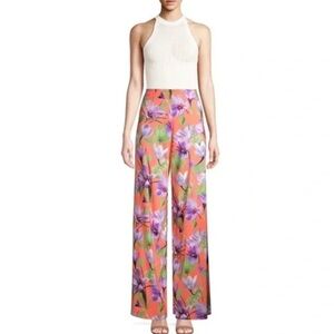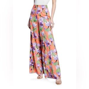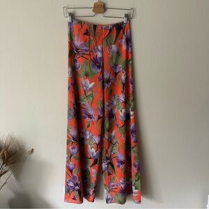Flowy wide-leg trousers finished with punchy tropical florals. Perfect for the summer! Seamless waistband Back zip close Wide leg Polyester/elastane Dry clean Made in USA