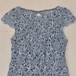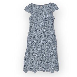 Alice + Olivia's elegant and classic open-back dress crafted in intricate blue lacing and tonal silk lining is designed with cap sleeves and a form-fitting silhouette fastened with a center back zipper and a loop and button closure. Complete the look with a pair of nude pumps and matching clutch for the perfect outfit