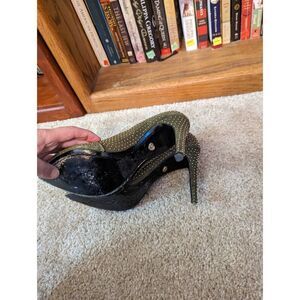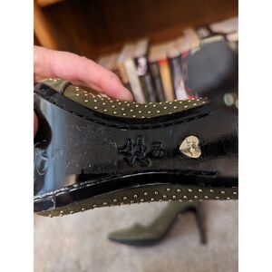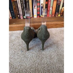 ALICE & Olivia & Dina Olivia olive green gold studded suede stilleto sz 38