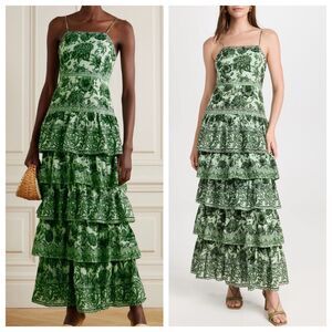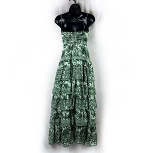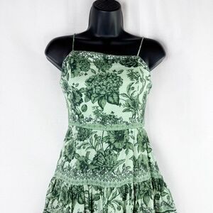 ALICE + Olivia Valencia Floral Sage Green Tiered Spaghetti Strap Maxi Dress Sz 0