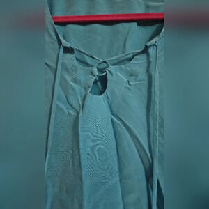 Tue front, bell sleeves. Pull on style. Tassel front. Aqua blue color.