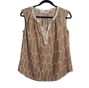ALICE & TRIXIE Sleeveless Geometric Tan 100% Silk Top w/ Modesty Clasp At Bust Size XS