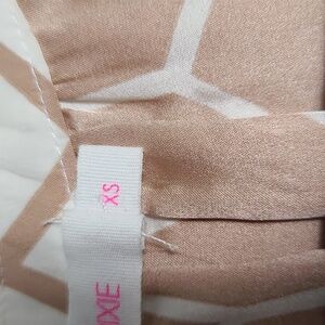 ALICE & TRIXIE Sleeveless Geometric Tan Silk Top w/ Modesty Clasp At Bust SizeXS