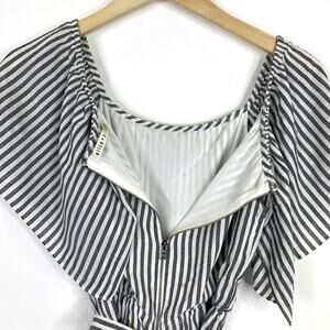 ALICE+OLIVIA Dory Romper Shorts Sz 0 Black Stripe Off Shoulder Ruffled Coastal
