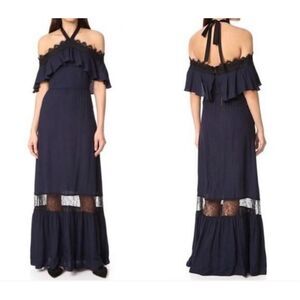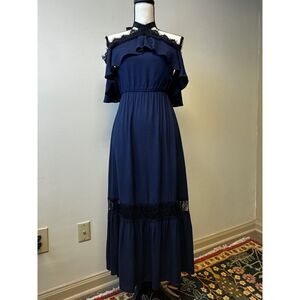ALICE+OLIVIA Mitsy Off-The-Shoulder Maxi Dress, Navy/Black, Sz 2