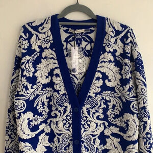 Alice+Olivia brand Branford Jacquard button down cardigan brand new with tags! This sweater is marked a small petite but it can easily accommodate various sizes depending on how baggy or fitted someone wants it. This is such a soft sweater! Stock photo added from the website for reference.