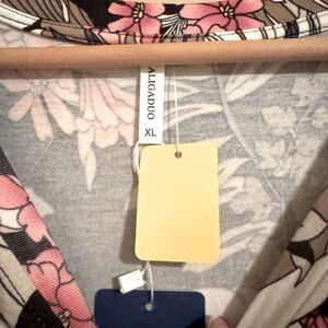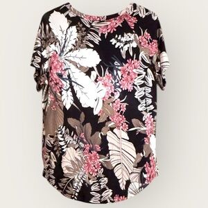 ALIGADUO Floral Tropical Print Blouse Black Pink Brown Short Sleeve Top XL