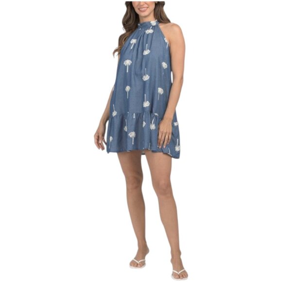 ALINE Made In Italy Sleeveless Halter Embroidered Mini Dress