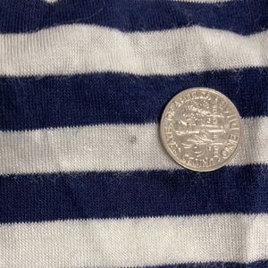 Size and washing instructions were cut out. However I did wash it.From the measurements I feel like this is a size 2X. Please make your own informed decision regarding the size by the approximate measurements given in the pictures. This is so soft, it feels like a soft t-shirt. One small dot on sleeve. See picture, dime is for comparison.Sleeves up or down.