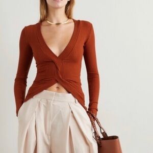 ALIX NYC Inez cropped twist-front ribbed stretch jersey top Brick. This top is in great used condition
