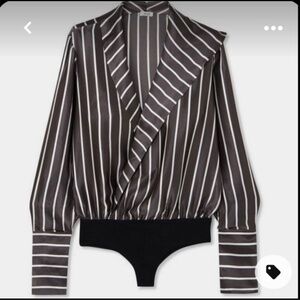 ALIX NYC Silky Long Sleeve Blouse Bodysuit Gray with White Stripes Size Small