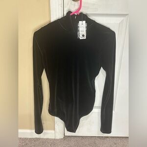 ALIX New York Black Velvet Mock Neck Long Sleeve Bodysuit Size Small
