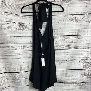 ALIX NYC Romper Womens Sz Small Revolve Cavalier in Black linen blend Vacay New