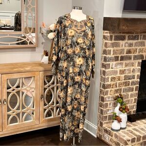 ALJAZEERA JALLABIAT Women’s Printed Embroidered Long Sleeves Kaftan Dress in the Size Large