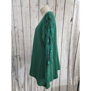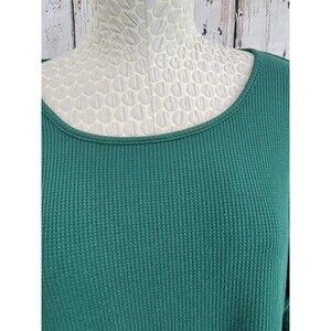 ALK Women's Large Suzanne Betro Waffle Knit Lace Accent Long Sleeve Blouse Shirt