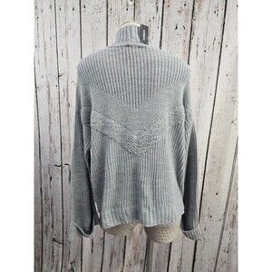 ALK Women's M Express Gray Knit Mock Neck Pullover Sweater W/ Wide Cuff Sleeves