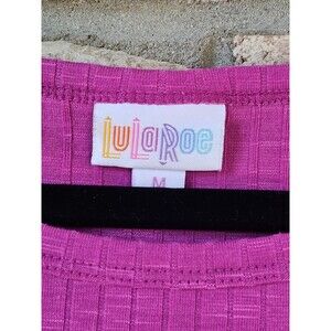 ALK Women's M Lularoe Pink Ribbed Short Sleeve Round Neck Tee T-Shirt Shirt Top