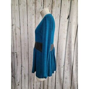 ALK Women's Medium Venus Faux Leather T-Strap V-Neck Sweater Blouse Shirt NWOT