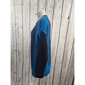ALK Women's S Vince Blue Colorblock Intarsia Knit Tunic Wool Sweater Crewneck