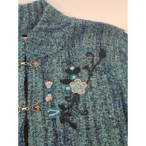 ALK Women's XL NorthStyle Teal Floral Embroidered Tunic Alpaca Blnd Cardigan EUC