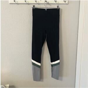 In good preowned condition other than some minor cracking at the color block potions. High rise. This pair is 7/8 length, so a bit shorter than what is being worn in the first image. These hit above the ankle.
