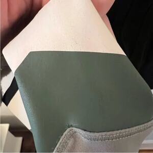 In good preowned condition other than some minor cracking at the color block potions. High rise. This pair is 7/8 length, so a bit shorter than what is being worn in the first image. These hit above the ankle.