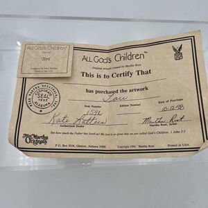 This beautiful All God's Children ornament, titled "Tori," is a 1997 Martha Root figurine that will make a lovely addition to any collection. The intricate details of the handcrafted piece make it a true work of art.