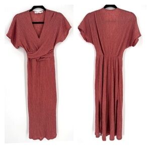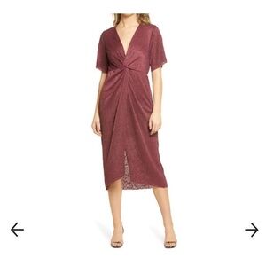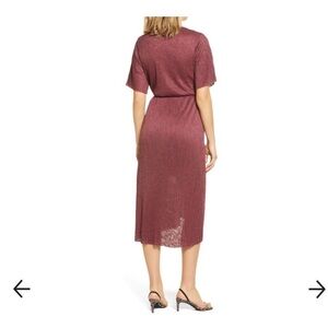 ALL IN FAVOR Wrap Midi Dress in Metallic Bordeaux