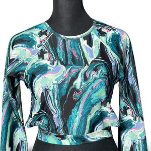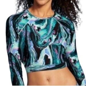ALL IN MOTION Multicolored Long Sleeve Cropped Swim Top, Tie Back Accent, Size M