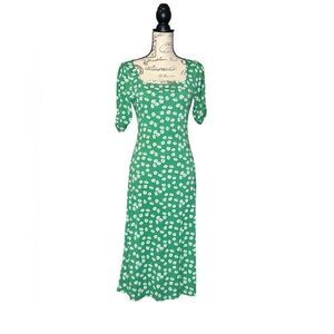 ALL IN FAVOR Floral Print short sleeve Midi Dress square neckline size XS