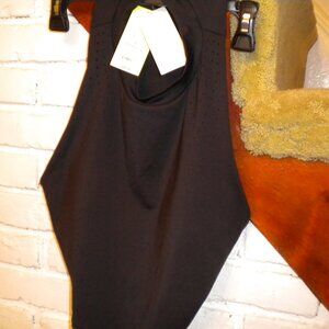 Must-have features: built-in shelf bra, quick-dry fabric, UPF 50+ material, laser cut on front and back, high collar