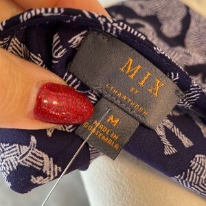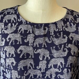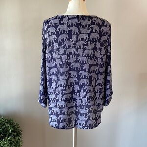 ALL OVER ELEPHANT PRINT Mix by 41 Hawthorn women’s blouse roll tab sleeve Med