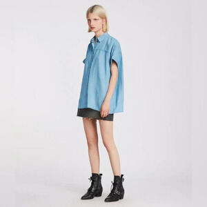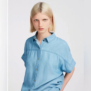 ALL SAINTS ALLSAINTS Pome Bay Shirt Tencel Boxy Denim Snap Faded Blue SM Clean